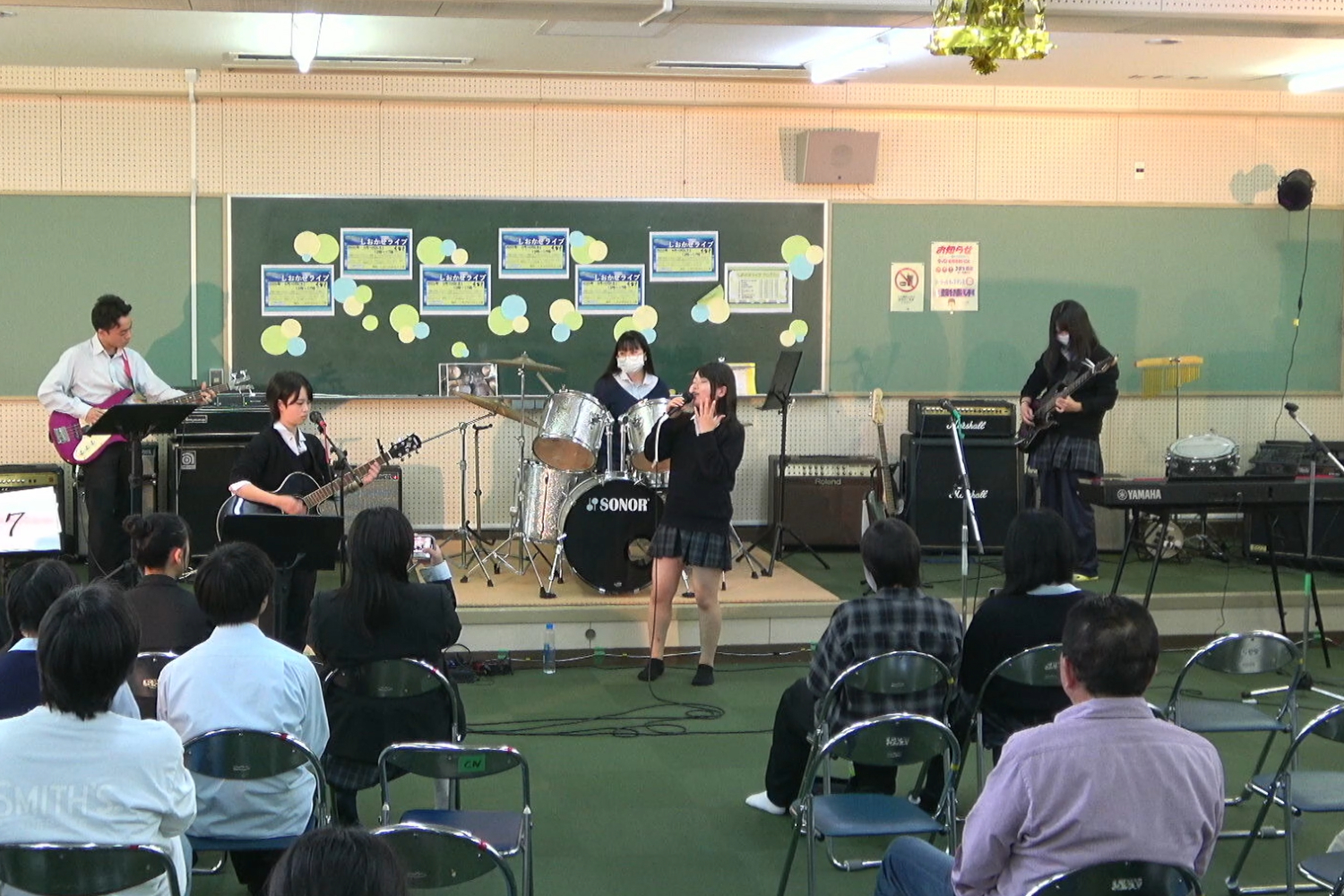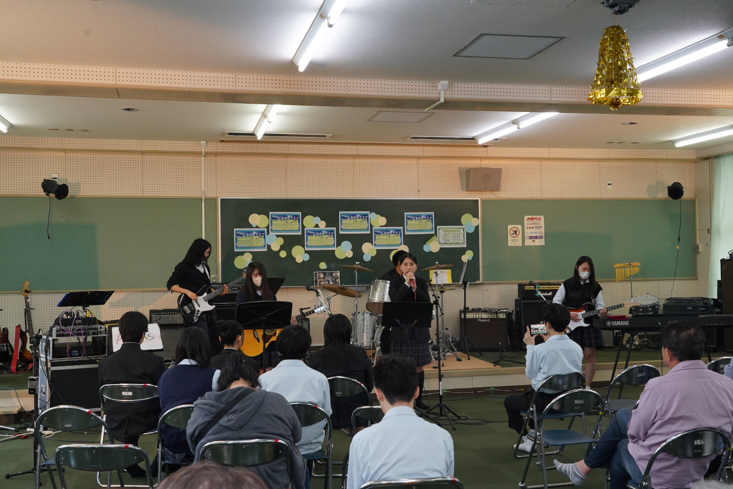 那珂湊高校軽音楽部【ふぁぶりーず】の皆さん。back numberの曲(瞬き)等を披露していただきました。