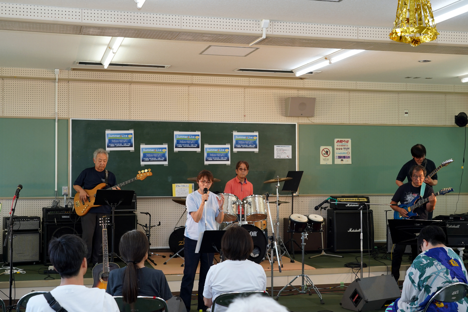 しおかぜみなとスタッフと企画メンバー、那珂湊高校軽音部先生で構成されたバンドです。最近では県内外からもお声がかかるようになりました‼今日は卒業生のエビちゃんが先生との夢の共演!